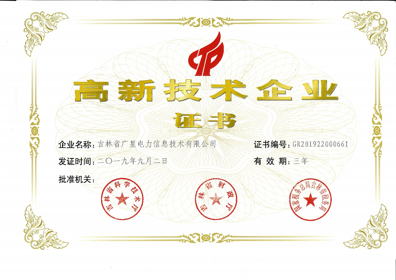2019 年廣星智聯(lián)榮獲2019年度國家級高新技術(shù)企業(yè)認(rèn)證